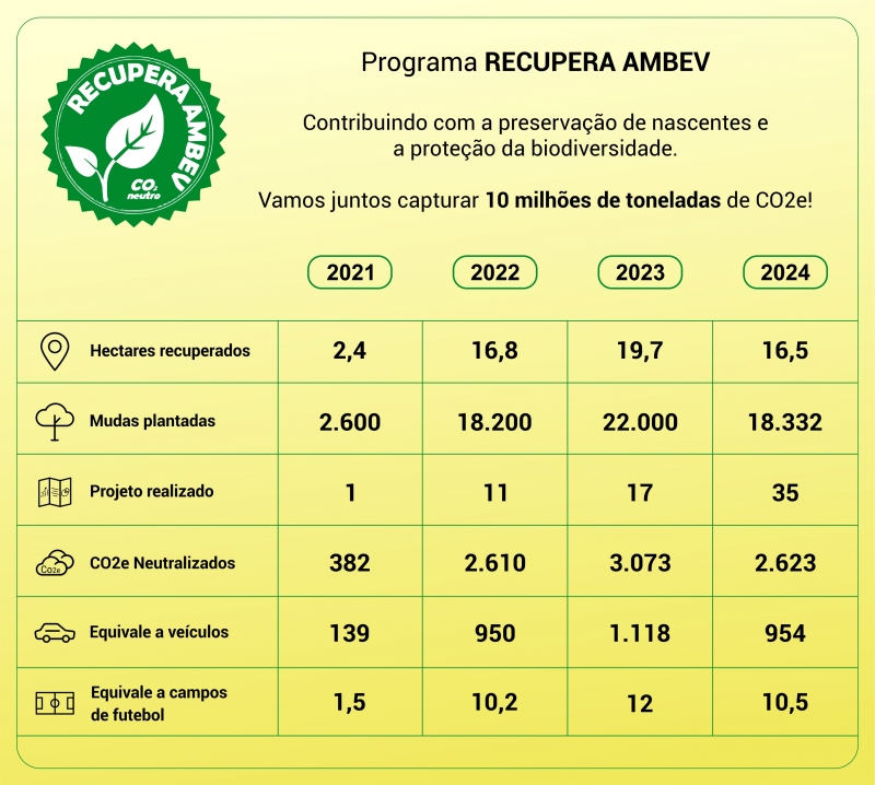 A Ambev participa dos programas Bacias e Florestas e Recupera Ambev, e desde então, vem recuperando e preservando bacias hidrográficas pelo Brasil. Além de preservar a qualidade da água, já conservou mais de 10.000 mil hectares em municípios presentes por todo o país.